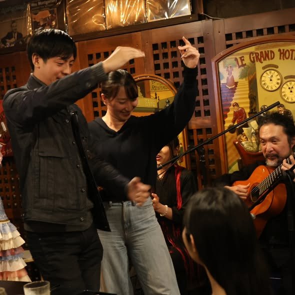 大学フラメンコ部al compasの後輩たちに視線を送ったら、快く出てきてくれて、会場はさらに大盛り上がり✨